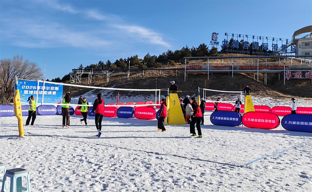 与传统室内排球不同,这里的赛场铺满了白雪,运动员们需要在雪地上展开较量。移动、起跳、扣杀,每个技术动作都因雪地的特殊性而更具挑战。尽管天气寒冷,队员们却展现出了极高的专注与热情。